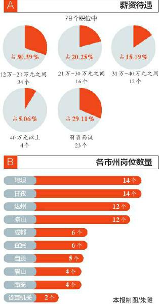 凉山州的12个职位参考成都、昆明等城市行业薪酬标准,在待遇上可谓“诚意满满”。凉山州委组织部有关负责人介绍,对“总师”等专业性较强的职位设置20万至40万元不等的年薪,高出该州科级领导干部工资的2至3倍;昭觉、喜德等贫困县职位的年薪按公务员标准上浮30%以上确定。阿坝州提供的所有职位,同时享受“硕博进阿坝行动”相关政策待遇。