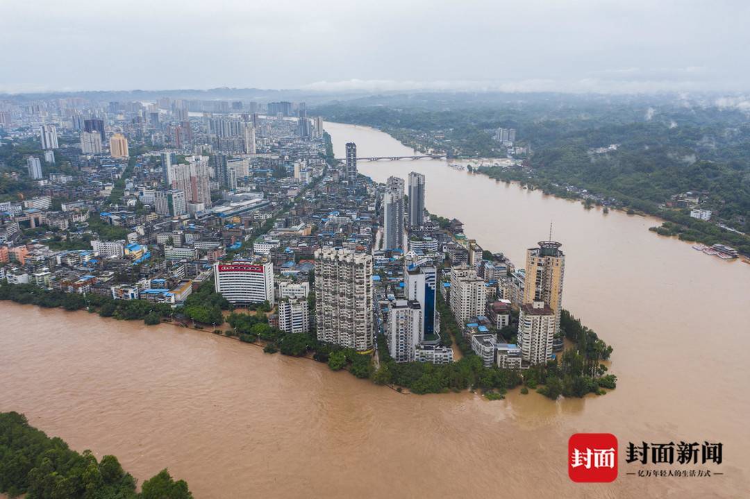 水淹大佛膝,乐山城区还能看到地面的,只有绿心公园了。