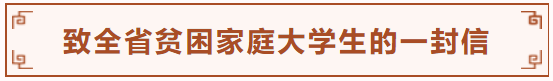 你们好!在秋季新学期开学之际,我们欣喜地看到,又一批寒门学子没有被贫困阻挡,能够金榜题名进入梦寐以求的大学,徜徉在知识的殿堂里学习。在此,我们谨向即将步入大学校门的你们表示祝贺!