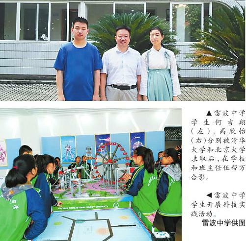 雷波县唯一的高中雷波中学近日传出喜讯:学校今年高考本科率达34%,上线人数总计402人,创历史新高。更值得一提的是,学生何吉翔、高欣怡分别被清华大学和北京大学录取,这是该校建校以来首次有学生同时考上清华大学和北京大学。还有多名学生,被武汉大学、北京师范大学、重庆大学等知名高校录取。