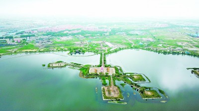 四面环水的大庆油田第一采油厂第七油矿503采油队二号丛式井平台井组。新华社发
