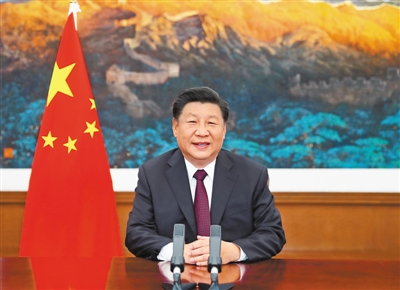 9月4日,国家主席习近平在2020年中国国际服务贸易交易会全球服务贸易峰会上致辞。新华社记者 李 涛摄