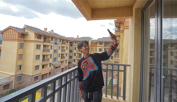 小伙儿名叫莫色拉博,照片中的他正站在新家的阳台上,举着手机自拍,他的身后是鳞次栉比的楼房。旁边一张照片,则是他和家人在屋里沙发上的合影,笑逐颜开。