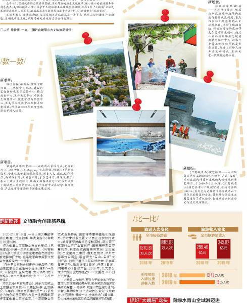 不仅仅是《只有峨眉山》,保乐力加威士忌工旅融合项目按4A级景区标准,正加快建设,今年内一期项目将建成投产;以茶旅融合为特色的国家现代农业产业园嘉峨茶谷将丰富峨眉山旅游业态,5个茶旅融合示范点各具特色,南部禅茶康养基地初现雏形,竹叶青川茶主题文化园正在积极打造中;峨眉雪芽援彝项目深耕落地,马边荣丁镇茶叶生产厂全面投产;医美康养项目莎蔓莉莎、峨眉山城西南康养项目(华西医院)已全面开工建设;借助五粮液、泸州老窖等知名酒企,联合研发“名山+名酒”文创产品;创新开展文化与自然讲堂、研学直播等活动,推出祈福2日游、行愿3日游、问道养心3日游产品。2019年,以文旅为龙头的服务业增加值占GDP比重达56%,创历史新高。