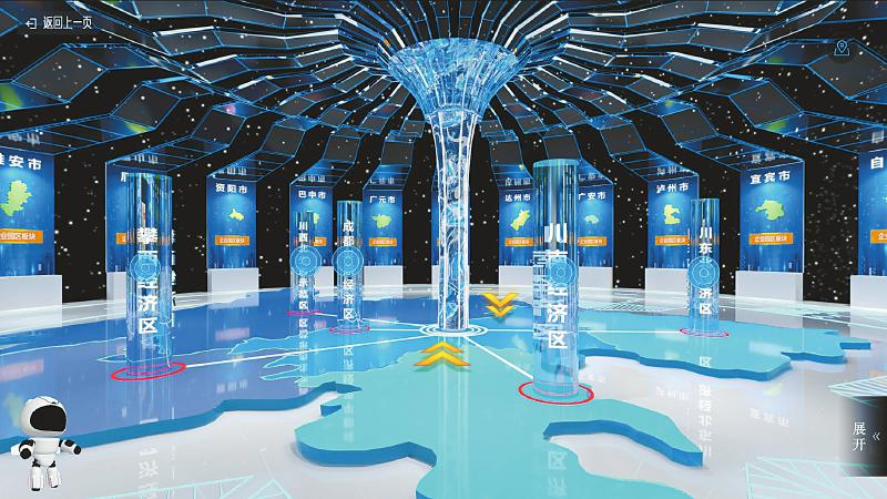 3分钟内,小科带着大家逐个参观介绍了“云展览序厅”“国家高新区建设成果馆”“四川省科技创新成果馆”“中国(绵阳)科技城主题馆”4个主题展馆。