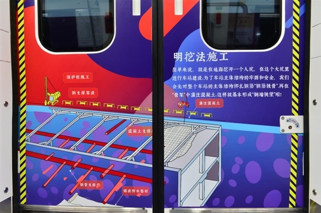“魅力深紫,紫色是神秘的象征”,“揭秘篇”以紫色为主色调,通过漫画图解轨道建设各项工序工艺的形式,带着乘客逐一探寻轨道地下施工的“小秘密”。