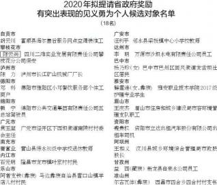 2020年拟提请省政府奖励有突出表现的见义勇为个人候选对象名单 来源:四川日报 发布时间:2020-10-02 21:28:27 浏览次数: 次 【字体:小 大】 来源: 四川日报 终审:唐志昂 分享到: 关闭本页 【打印正文】