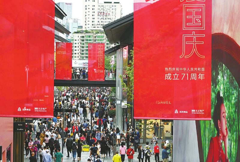 10月3日,成都市的商业中心迎来国庆黄金周人流高峰。今年国庆,在全国各地搜索“十一”出行的地区排名里,四川位列省级区域第二。