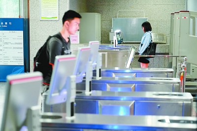 工作人员在郑州地铁紫荆山站刷脸过闸。新华社发
