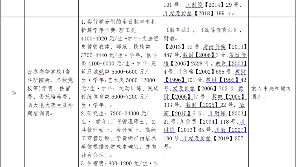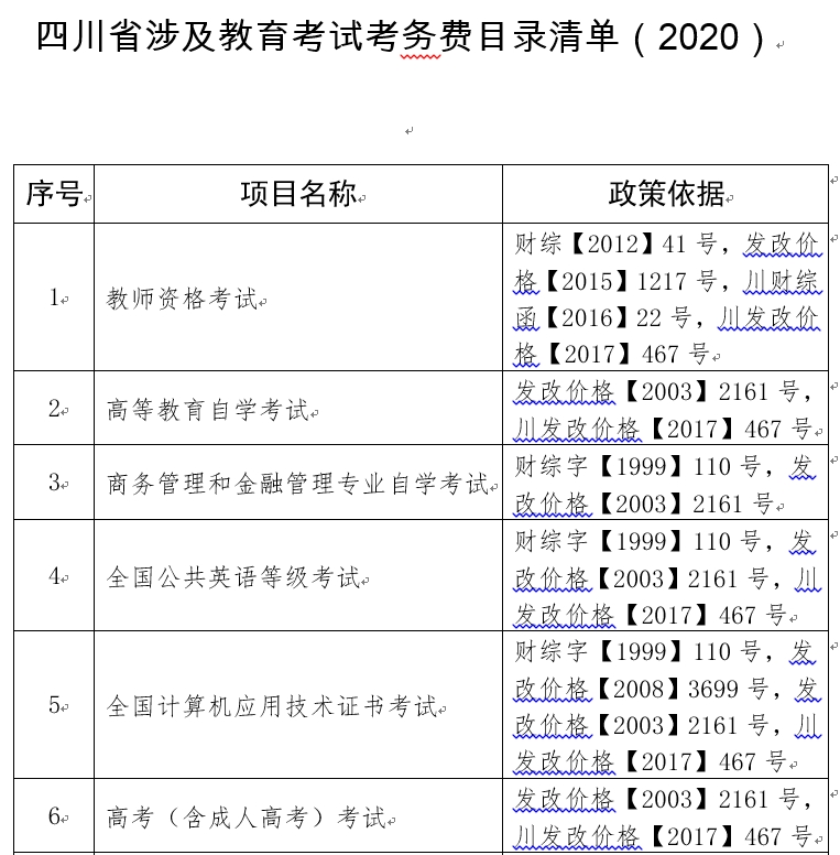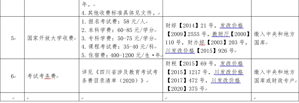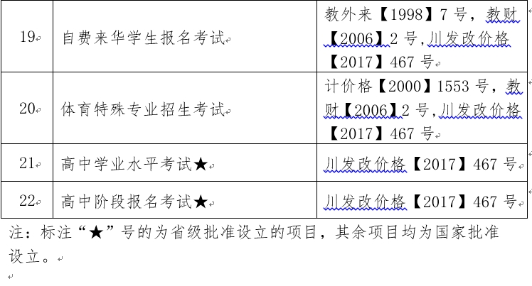 四川省公布教育行政事业性收费目录清单