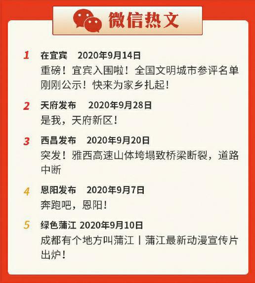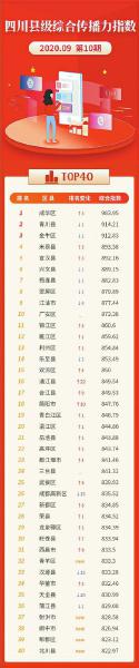 2020年9月四川县级综合传播力指数发布 多个城市宣传片获微信阅读量100000+