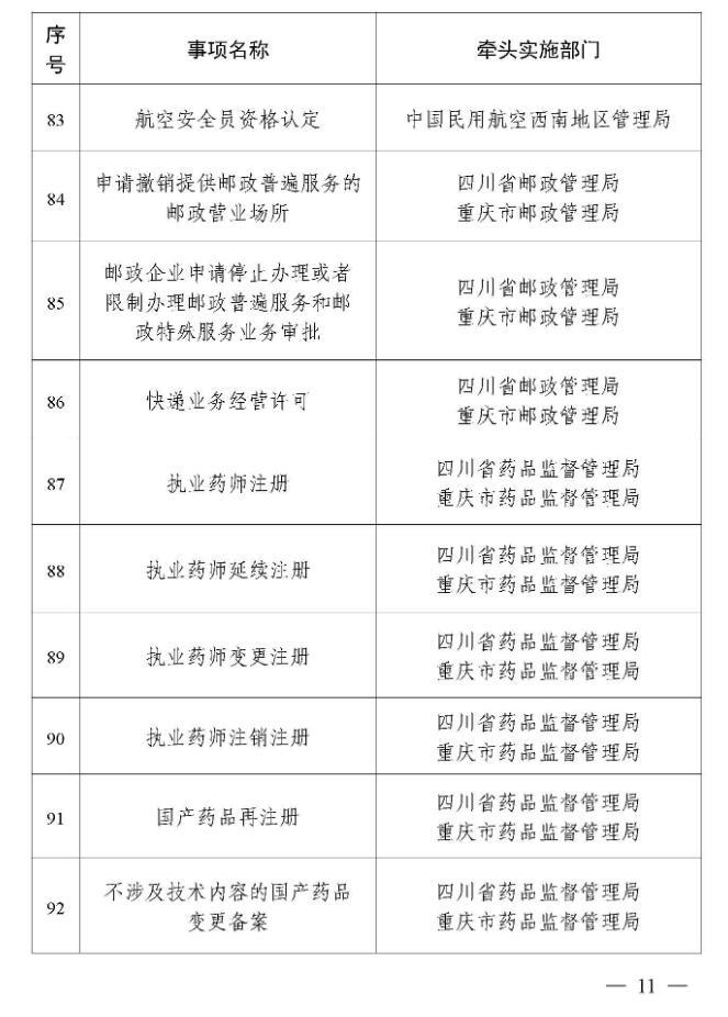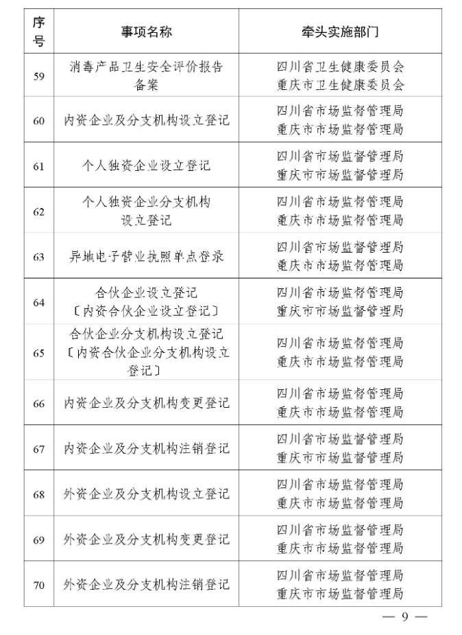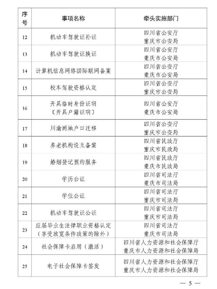 一、两省市相关部门(单位)要加快推动第一批川渝通办事项标准化、规范化建设,统一事项受理条件、申请材料、办理流程等要素,编制规范化办事指南,明确线上线下办理方式,实现同一事项在川渝两地无差别受理、同标准办理。
