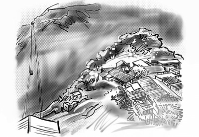 古路村索道。郭红松据李依凡拍摄的照片绘