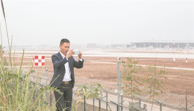 2020年11月2日 成都市民陶彪提前一天来到天府国际机场旁等候第一架飞机降落