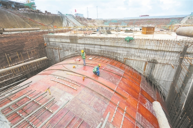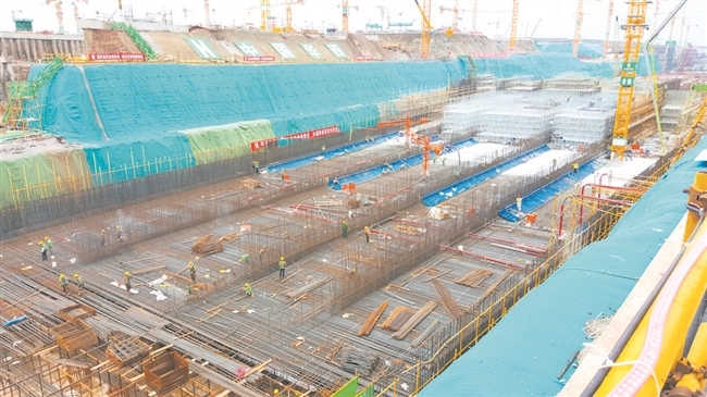 2019年6月18日 穿行于天府国际机场T2航站楼地下的大铁(高铁)建设施工现场底板钢筋绑扎
