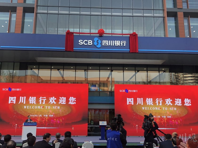 11月7日上午10:15分,成都天府新区的总部大楼门前,冬日暖阳中,三张三米多鲜艳的红绸缓缓拉开,四川银行的牌匾显现出来,现场一片掌声。今天上午,四川银行在这里举办了开业暨银企合作签约仪式。