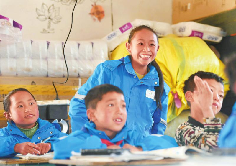 2019年4月24日,昭觉县色底乡乃拖村爱慕小学二年级学生在课堂上积极发言。该县凉善公益促进会从最初的一个支教点发展到现在的15个支教点,直接、间接帮助了超过5000名山区儿童。