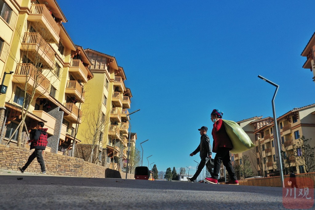 某色达体家在这台地上繁衍生活了五代人。5月13日清晨,51岁的某色达体早早起床,扫净火塘中尚有余温的灰烬,关上院门,离开百年老屋,和妻子一起走下2566级钢梯。65公里外,在昭觉县最大的易地扶贫搬迁移民安置点,一座100平方米、设施齐全的新家正等着他们。