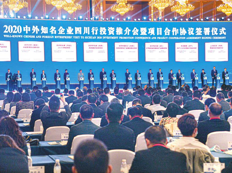 11月18日,2020中外知名企业四川行投资推介会暨项目合作协议签署仪式在成都举行。四川日报全媒体记者郝飞摄