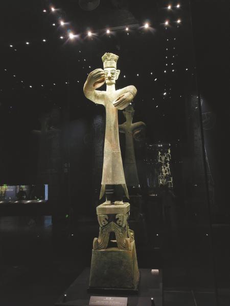 青铜大立人。 四川日报全媒体记者 吴梦琳 摄 本文图片除署名外均由三星堆博物馆提供