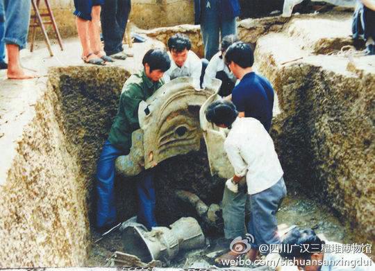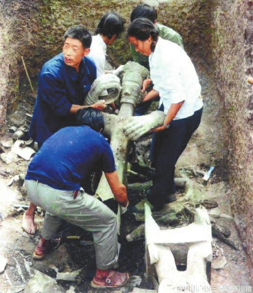 34年前,三星堆一、二号祭祀坑的发现,完全是一场意外。当年主持发掘的领队陈德安回忆,那是1986年7月18日,三星堆的农民在一片土堆取土烧砖。突然,在距地表约2米深的地方,几件玉器随着刨起的泥土露了出来。此时,四川省文物考古研究院工作人员正在三星堆的砖厂宿舍整理春季发掘材料。“老远就听到有人喊,陈老师,出东西了!”大家把手里的东西一放,赶紧跑到现场。露出来的玉器有玉戈、玉璋等,感觉像是王公贵族用的东西。他们以为挖到古蜀王的墓葬了,激动万分,就此展开抢救性发掘。这是一号祭祀坑的发现。一个月后的8月16日,他们又在30米外的地方,发现了二号祭祀坑。