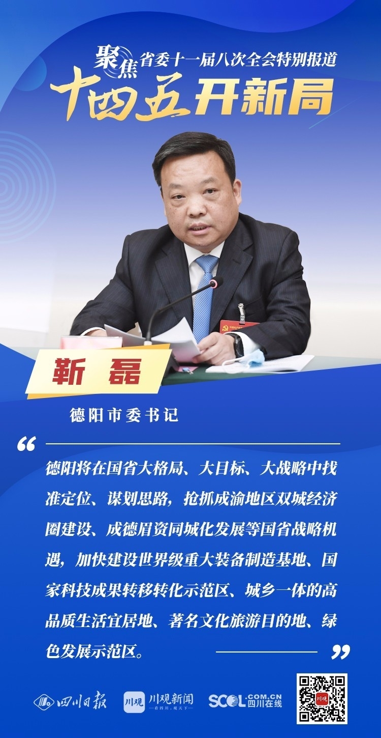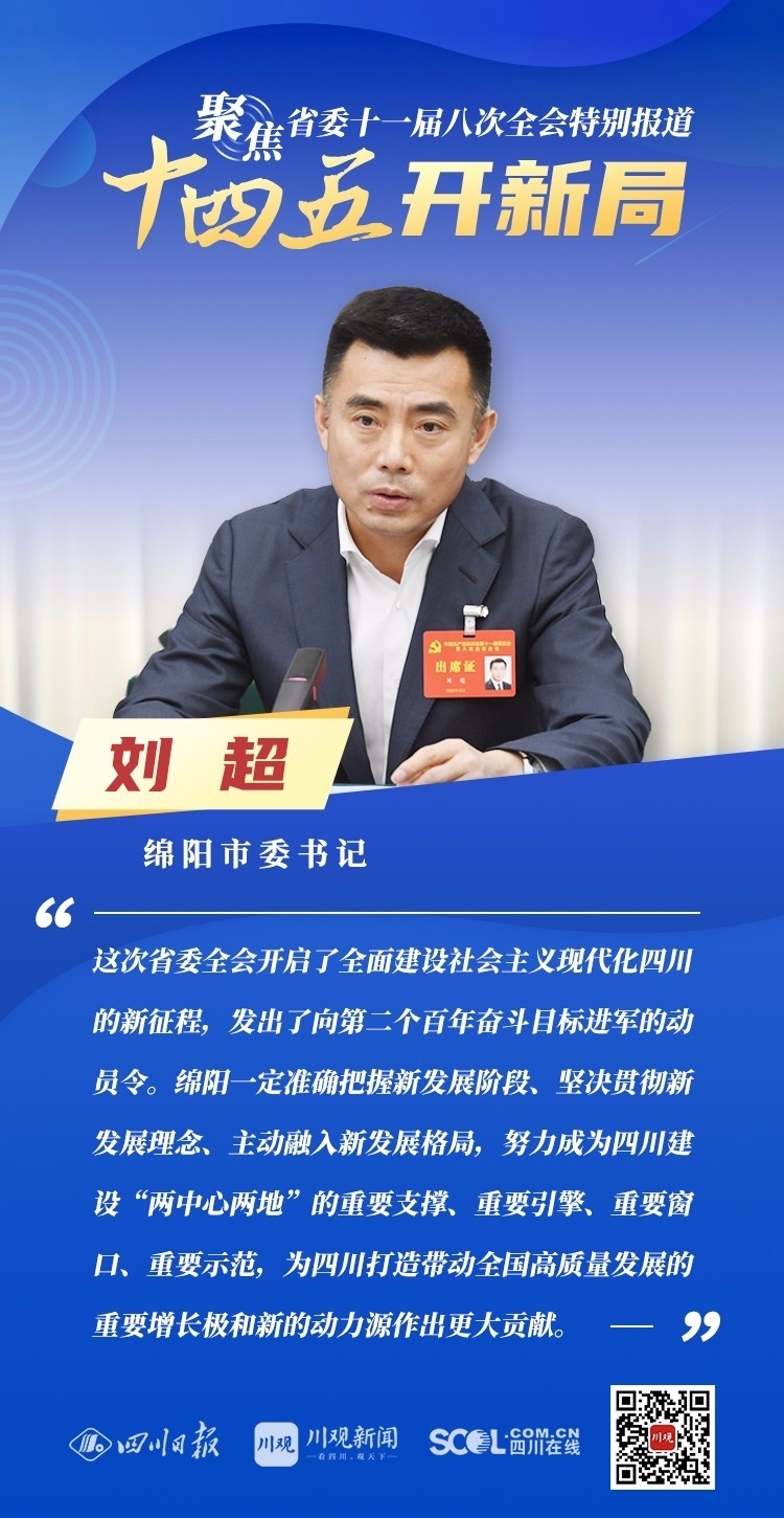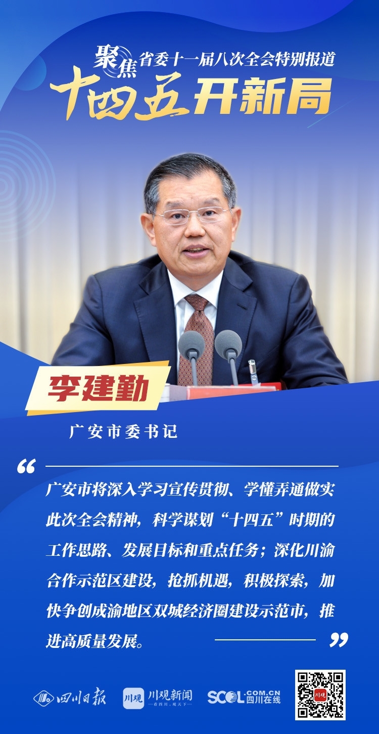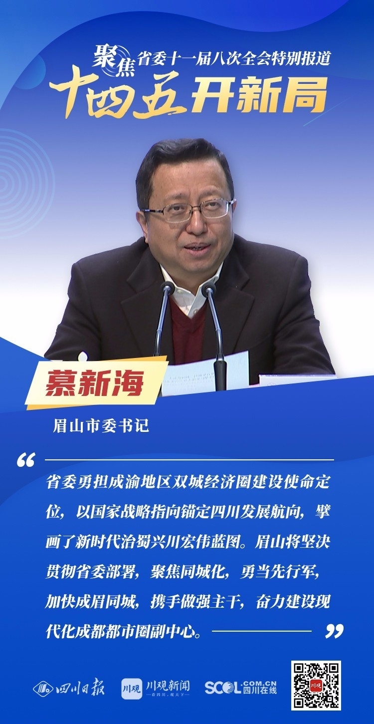 12月3日,中共四川省委十一届八次全会在成都开幕,全会将深入学习贯彻党的十九届五中全会精神,审议通过《中共四川省委关于制定四川省国民经济和社会发展第十四个五年规划和二〇三五年远景目标的建议》,为未来5年乃至更长时期四川发展谋划新蓝图。