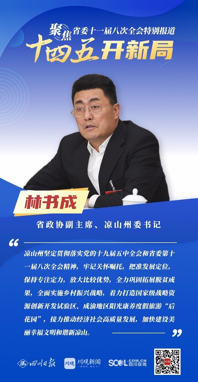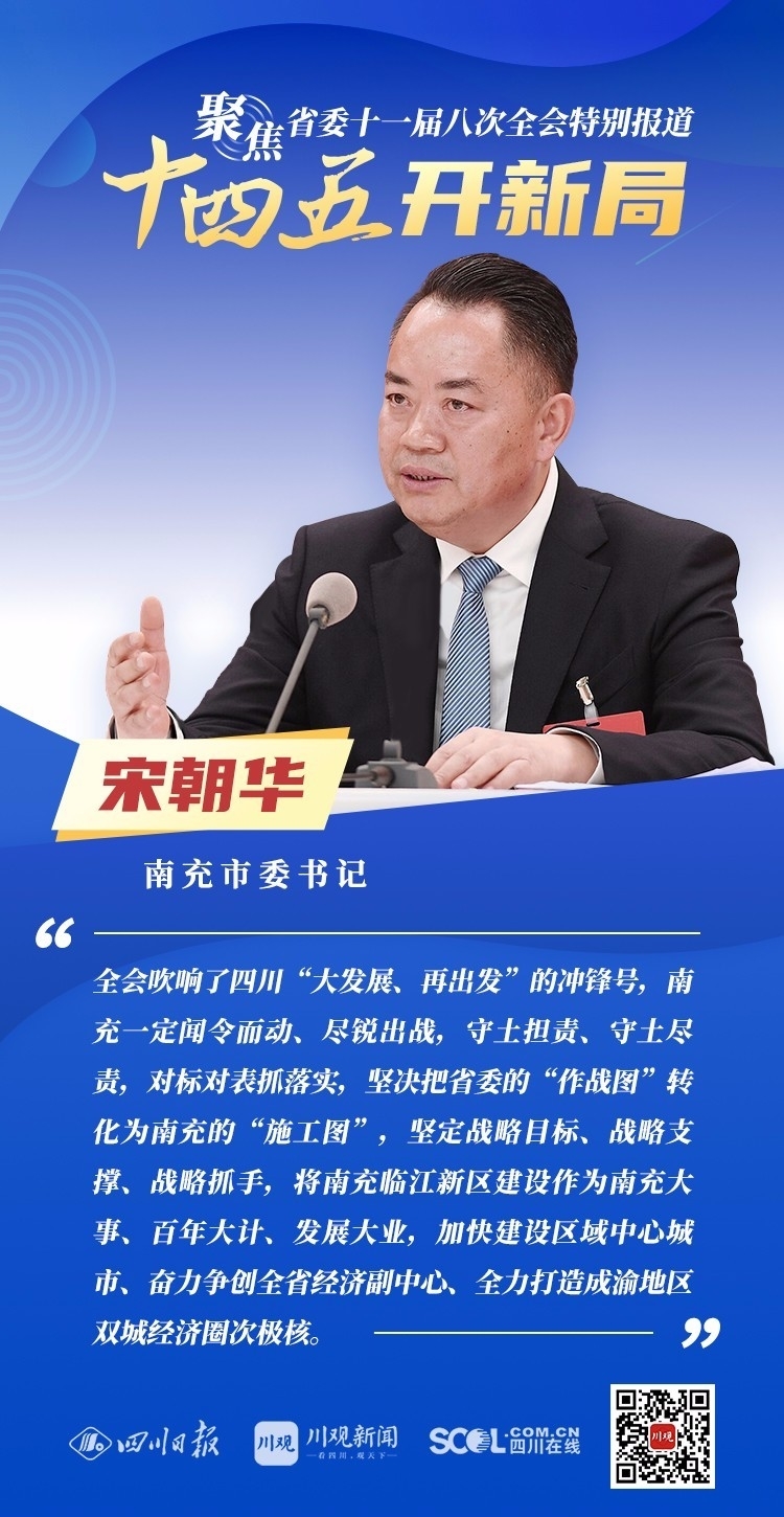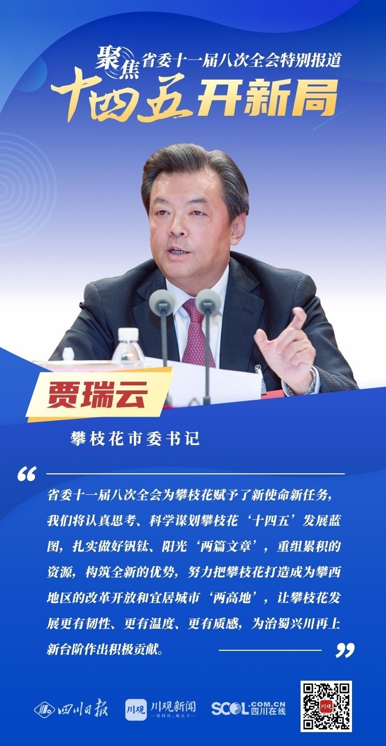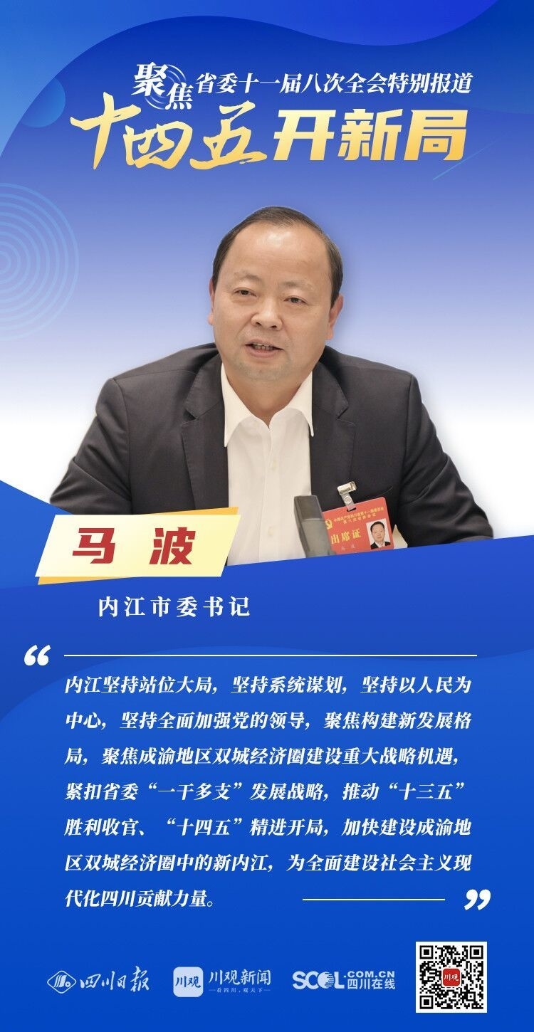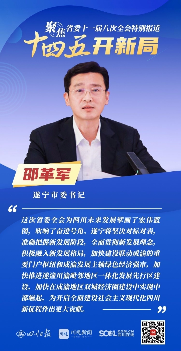 12月3日,中共四川省委十一届八次全会在成都开幕,全会将深入学习贯彻党的十九届五中全会精神,审议通过《中共四川省委关于制定四川省国民经济和社会发展第十四个五年规划和二〇三五年远景目标的建议》,为未来5年乃至更长时期四川发展谋划新蓝图。
