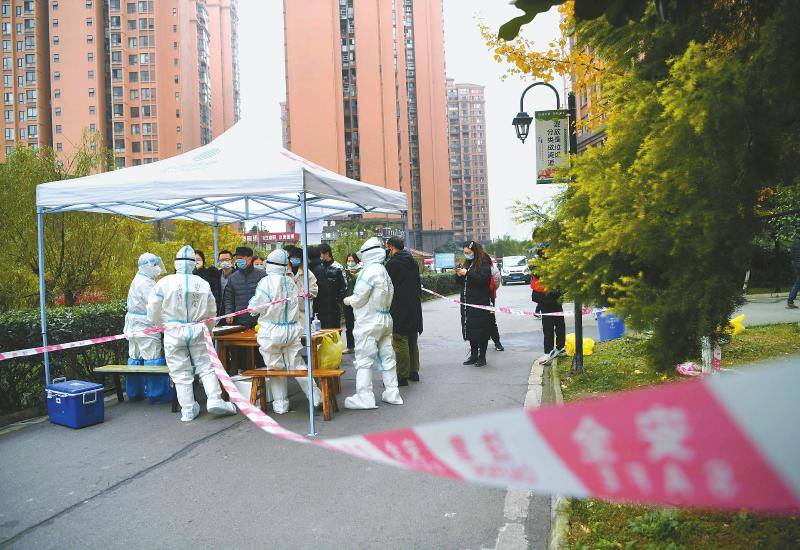 12月9日,成都市成华区扩大免费核酸检测范围。图为成都理工大学理工东苑家属区内,居民正在进行核酸检测。 四川日报全媒体记者肖雨杨摄