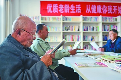 实施积极应对人口老龄化国家战略,事关国家发展全局,事关百姓福祉。老人在河北省级医养结合试点单位沧州青县康泰养老护理中心图书室阅读。新华社发