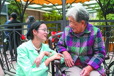 实施积极应对人口老龄化国家战略,事关国家发展全局,事关百姓福祉。云南昆明官渡区养老综合服务示范中心护理部工作人员陪老人聊天。新华社发