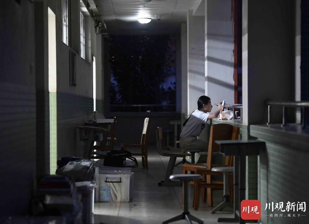 7月6日晚,安静的四川师大附中实验楼一排排窗户灯光明亮。从窗户向里望去,一个个青春的身影正在埋头看书复习。这是该校高三学子们考前最后一个晚自习。受疫情影响,2020年全国普通高等学校招生统一考试延期一个月举行。四川在线记者 肖雨杨 摄
