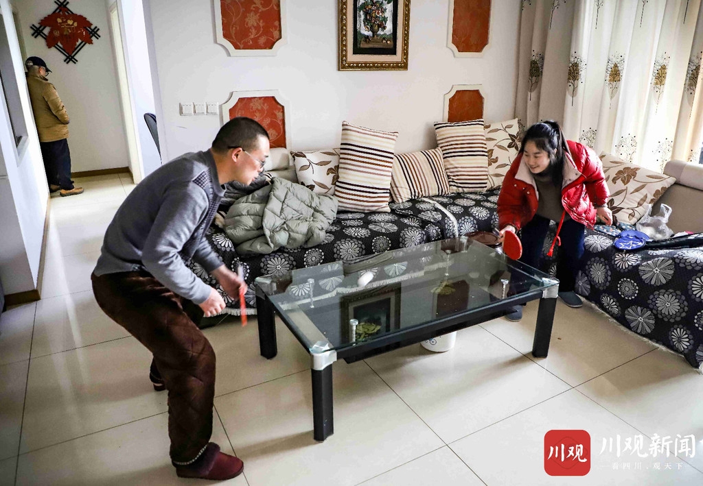 1月30日,南充市,宅家中不出门的兵乓球运动。川观拍客 何颖 摄