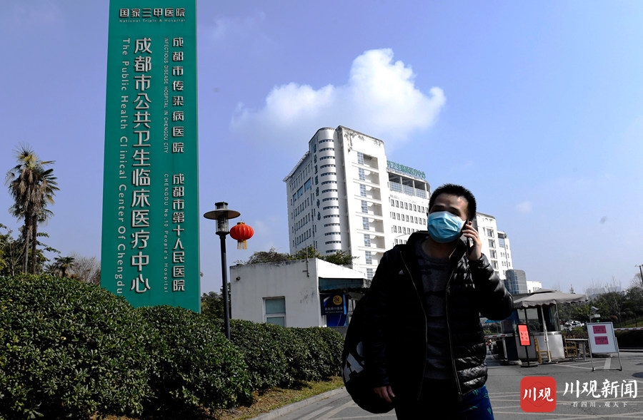 1月29日上午11时许,四川省第一例治愈新型冠状病毒感染的肺炎患者办理了出院手续,图为治愈出院的杨某走出成都市公共卫生临床医疗中心大门。四川在线记者 李向雨 摄