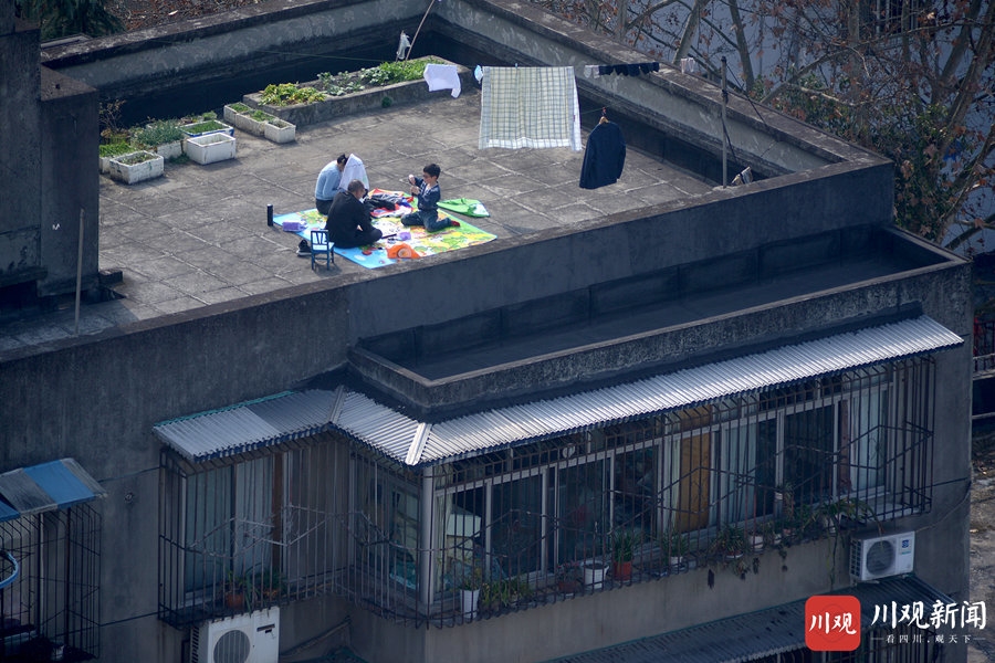 2020年2月29日成都,因疫情“宅”在家的日子,一家人在屋顶享受阳光。四川在线记者 华小峰 摄