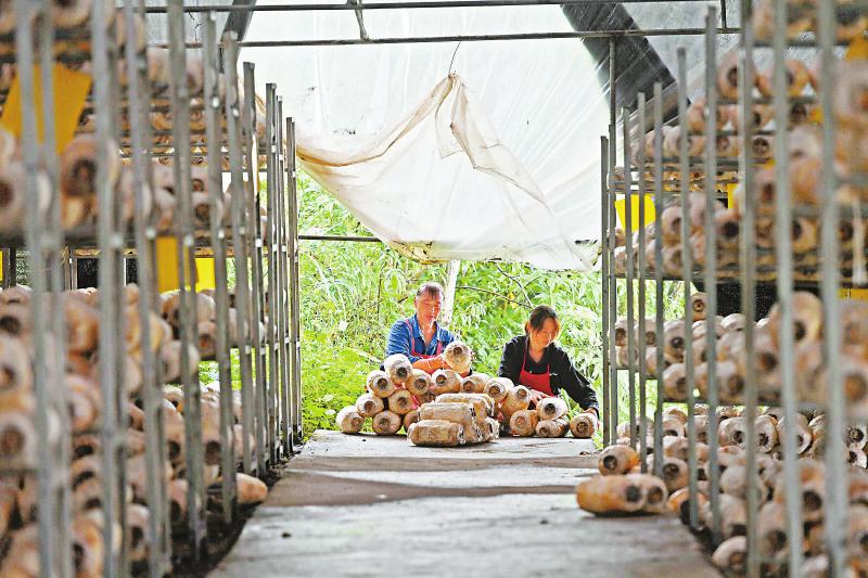 金口河区金河镇曙光村食用菌基地生产高山错季食用菌,带动贫困群众百余人脱贫致富。