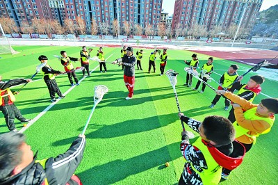 12月1日,河北省滦平县第五小学的棍网球队员正在训练。新华社发
