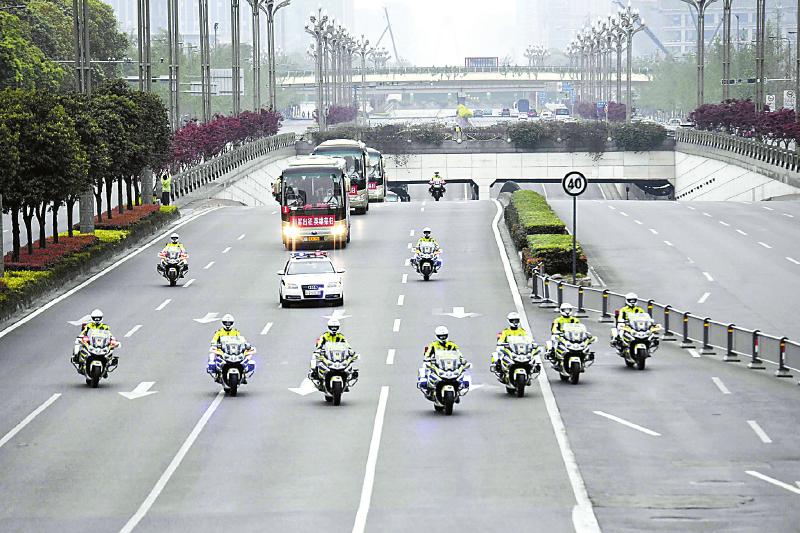 4月 4月7日,四川最后一批援助湖北医疗队队员平安抵川。至此,四川援助湖北医疗队1463人全部凯旋。警用摩托车开道,12辆大巴车载着医疗队队员前往集中隔离休养基地。
