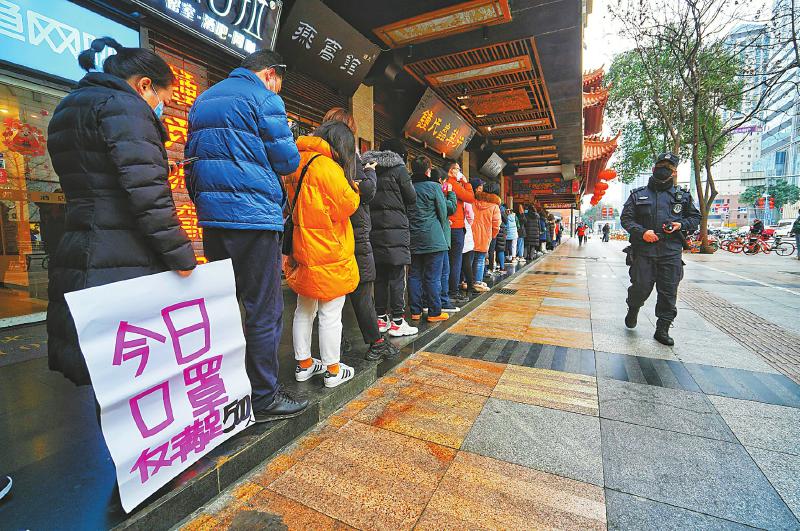 1月 1月26日(正月初二)11点15分,成都同仁堂,市民排队购买口罩,每人一次只能购买一包成人口罩和一包儿童口罩。3天后,该药店推出预约购买二维码。