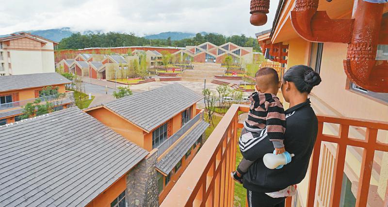 昭觉沐恩邸社区新居民眺望新居。 四川日报全媒体记者华小峰摄