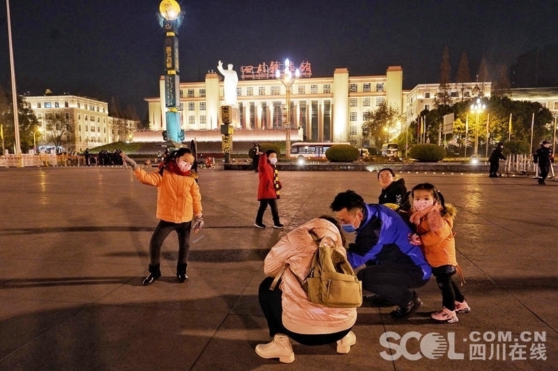 “2021年又是新的一年开始,希望祖国蒸蒸日上、繁荣富强!也祝大家在新的一年里一切顺利。”来自资阳市的廖向文带着13岁的儿子来看升旗。他说,让孩子与大家一起观看升旗仪式,对祖国的繁荣富强有了更真切的感受。