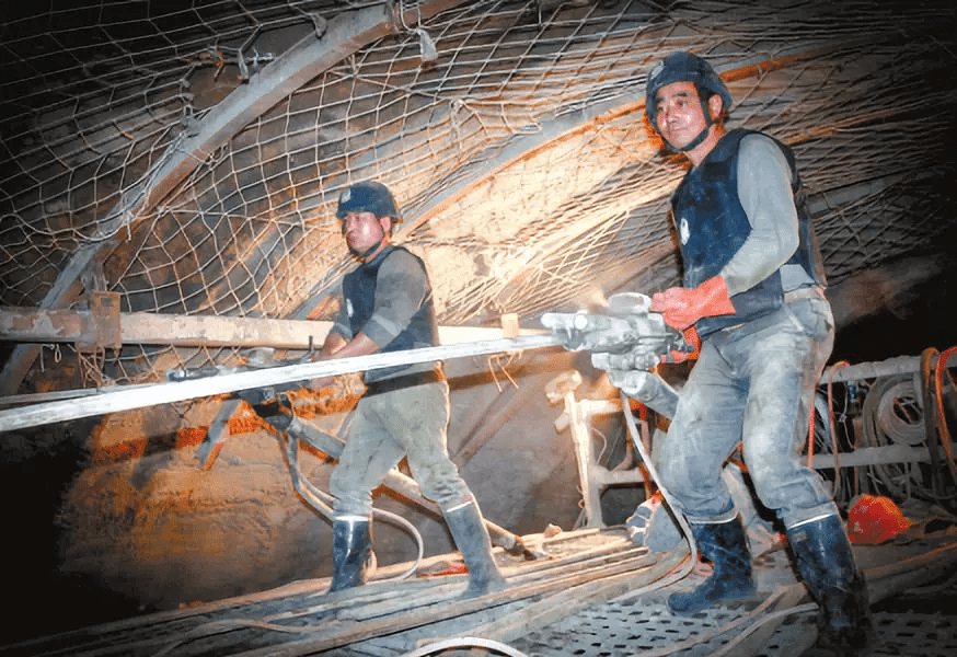 为此施工区安装了液压防护棚。每开挖一段隧道,马上用弧形钢架顶住隧道顶端,以支撑断面岩体、稳固洞体。 工人们还戴上了钢盔、穿上防弹服进行施工作业,堪比加里森敢死队。平均每天,施工队伍会用掉一吨炸药进行爆破,但平均每天也只能掘进3.6米。