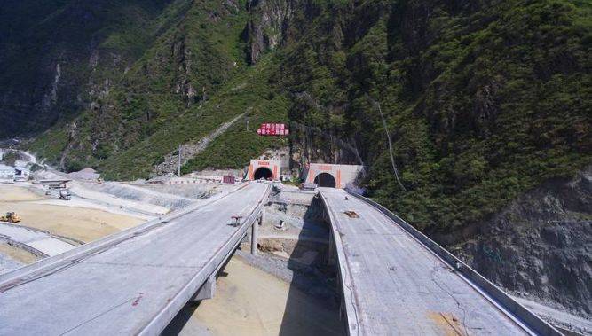 4. 2017年9月26日,被誉为“川藏第一隧”的雅康高速二郎山特长隧道正式贯通。隧道全长13.4公里是雅康高速公路的控制性工程之一,为全省在建第二长高速公路隧道。隧址处于板块交界地带,穿越13条区域性断裂带,因地质条件极其复杂,被称作“地质博物馆”。