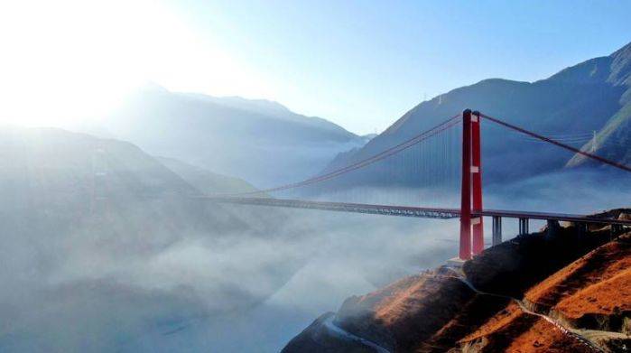 6. 2018年10月1日上午,有着“川藏第一桥”之称的雅康高速泸定大渡河大桥完成桥面施工,具备通车能力,为雅康高速剩余40公里今年底提前通车,奠定坚实的基础。