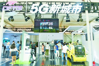 观众在服贸会5G通信服务专题展区参观。新华社发