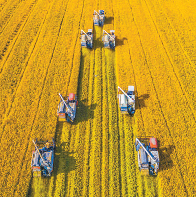 江苏宿迁泗洪县龙集镇的晚稻开镰收割。张连华摄(影像中国)