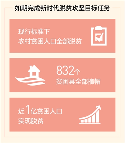 经过8年持续奋斗,我们如期完成了新时代脱贫攻坚目标任务,现行标准下农村贫困人口全部脱贫,贫困县全部摘帽,消除了绝对贫困和区域性整体贫困,近1亿贫困人口实现脱贫,为全面建成小康社会作出了重大贡献,为开启全面建设社会主义现代化国家新征程奠定了坚实基础。