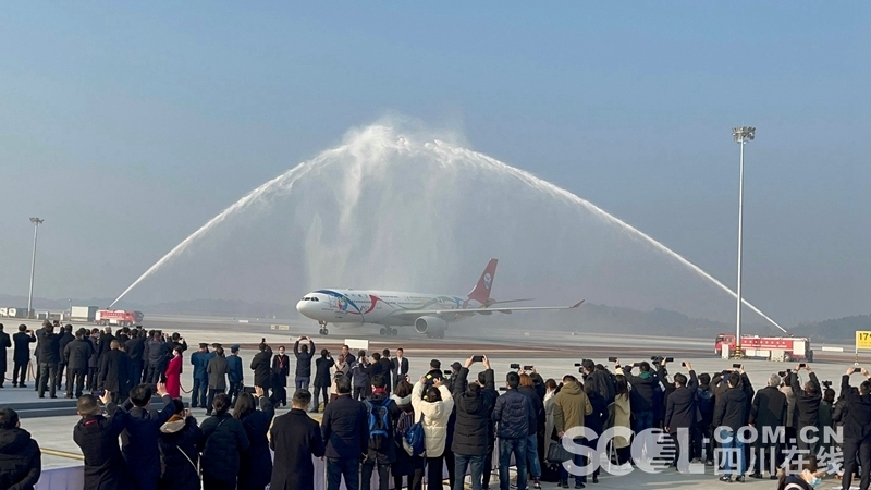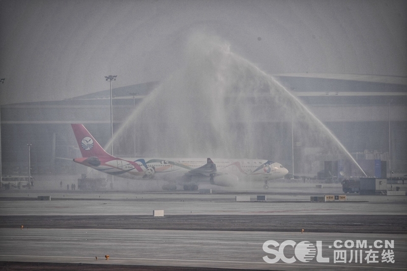 “成都大运号”A330飞机是双通道远程宽体客机,拥有300多个座位。就选派“大运号”来首飞亮相,川航相关负责人表示,A330这样的宽体客机是川航执飞国际航线的主力机型,待天府国际机场正式通航后,更多川航宽体机将现身,助力天府国际机场打造成都国际航空枢纽。