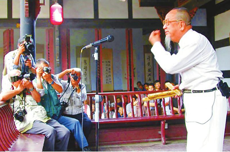 已故金钱板大师邹忠新的精彩表演。 李豫龙摄