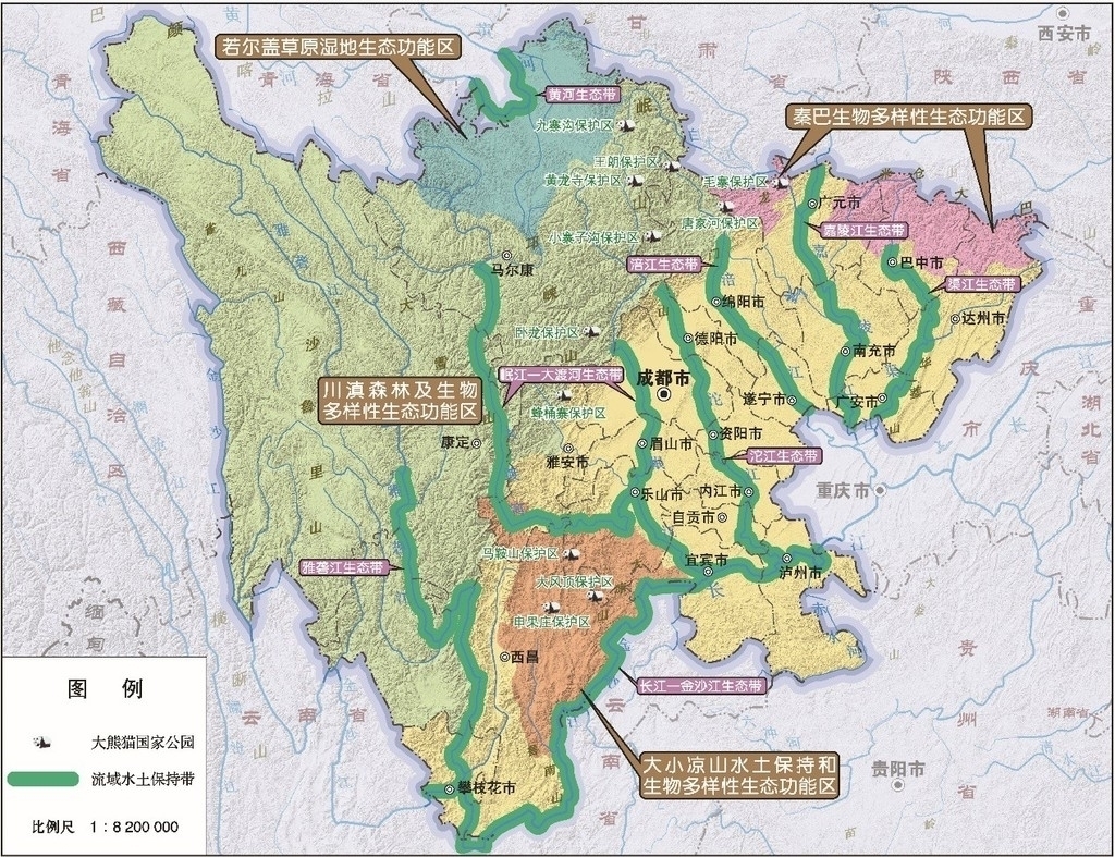 此外,《纲要草案》提到还要加强川滇森林及生物多样性、若尔盖草原湿地、秦巴生物多样性、大小凉山水土保持和生物多样性4大重点生态功能区建设,保护修复森林、草原和湿地等自然生态系统。