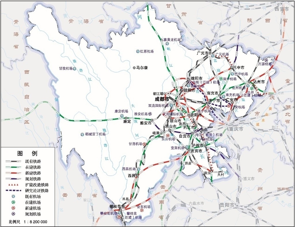 “飞机转飞机”的机场布局也在赶紧。四川要建成成都天府国际机场、阆中机场、达州(迁建)机场。布局建设乐山机场、遂宁机场、广安机场、攀枝花(迁建)机场、会东机场、甘洛机场。规划研究万源机场、内江(自贡)机场、雅安机场和绵阳(迁建)机场。这里面有你的家乡吗?